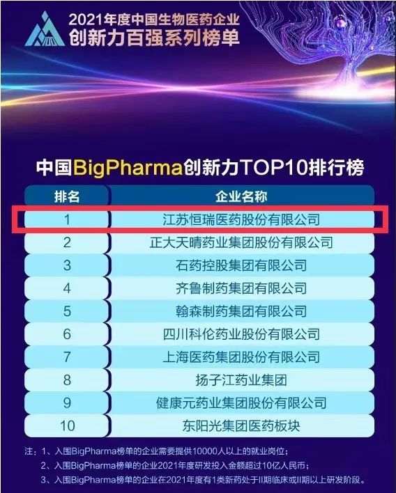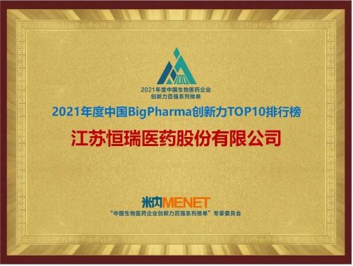 9月16日,由米内网主办的“2021年度中国生物医药企业创新力百强系列榜单”发布会在线上举办。6163银河医药继去年登顶“中国BigPharma企业创新力TOP10排行榜”后,今年再次名列该榜单首位。